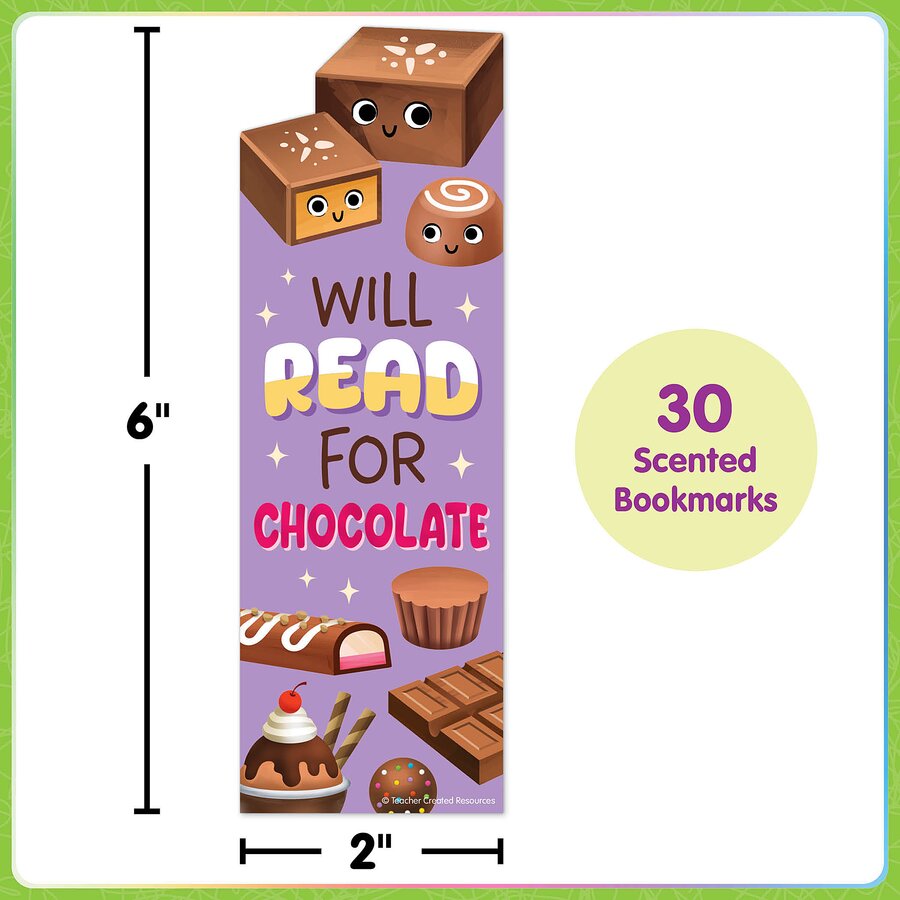Calling all chocolate lovers! Sweeten up your classroom reading incentives with these scented bookmarks. Featuring delectable sweets, a chocolate scent, and a “will read for chocolate” message, these bookmarks are great for treasure box prizes, student incentives, reading rewards, and more. Each pack includes 30 pieces. Each bookmark measures 2" x 6".