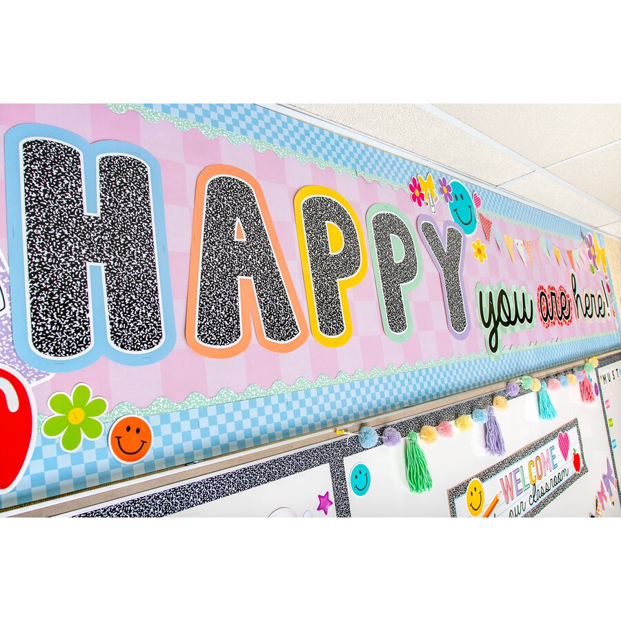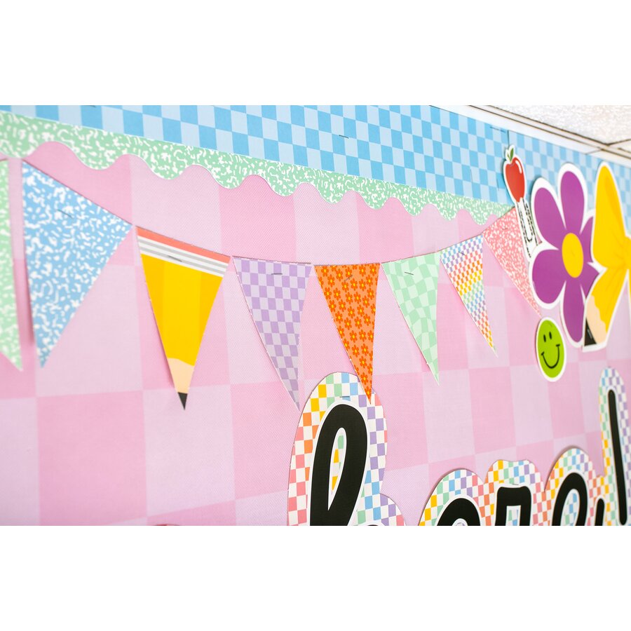 Use colorful border trim to liven up your classroom! Create fresh looks for bulletin boards, windows, walls, and class projects. Mix and match with coordinating products (stickers, notepads, awards, etc.) for a classroom theme. Each pack has 12 pieces (2 3/16'' x 35'') for a total length of 35 feet of trim!