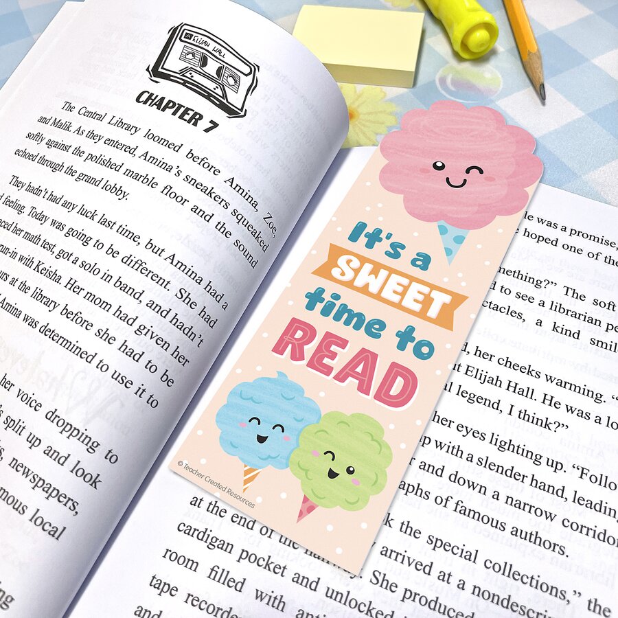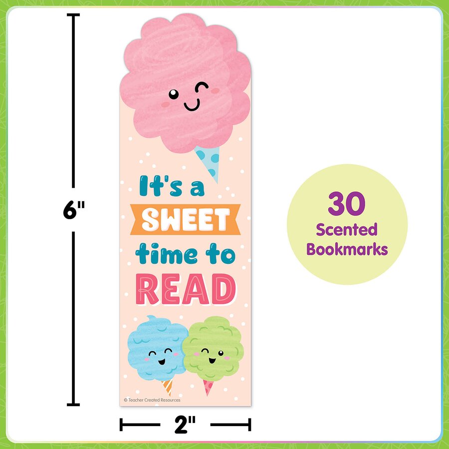 Put the fun into fundamentals with these reading bookmarks. Featuring adorable art, sweet words, and a cotton candy scent, these bookmarks are great for treasure box prizes, tucking into books at the library or book fair, or as class gifts. Every pack includes 30 pieces. Each bookmark measures 2" x 6".