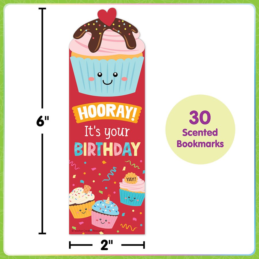 Celebrate reading and every student’s birthday with a scented surprise. Featuring colorful designs and a cupcake scent, these bookmarks are the perfect prize for making every student feel seen on their special day. Every pack includes 30 pieces. Each bookmark measures 2" x 6".
