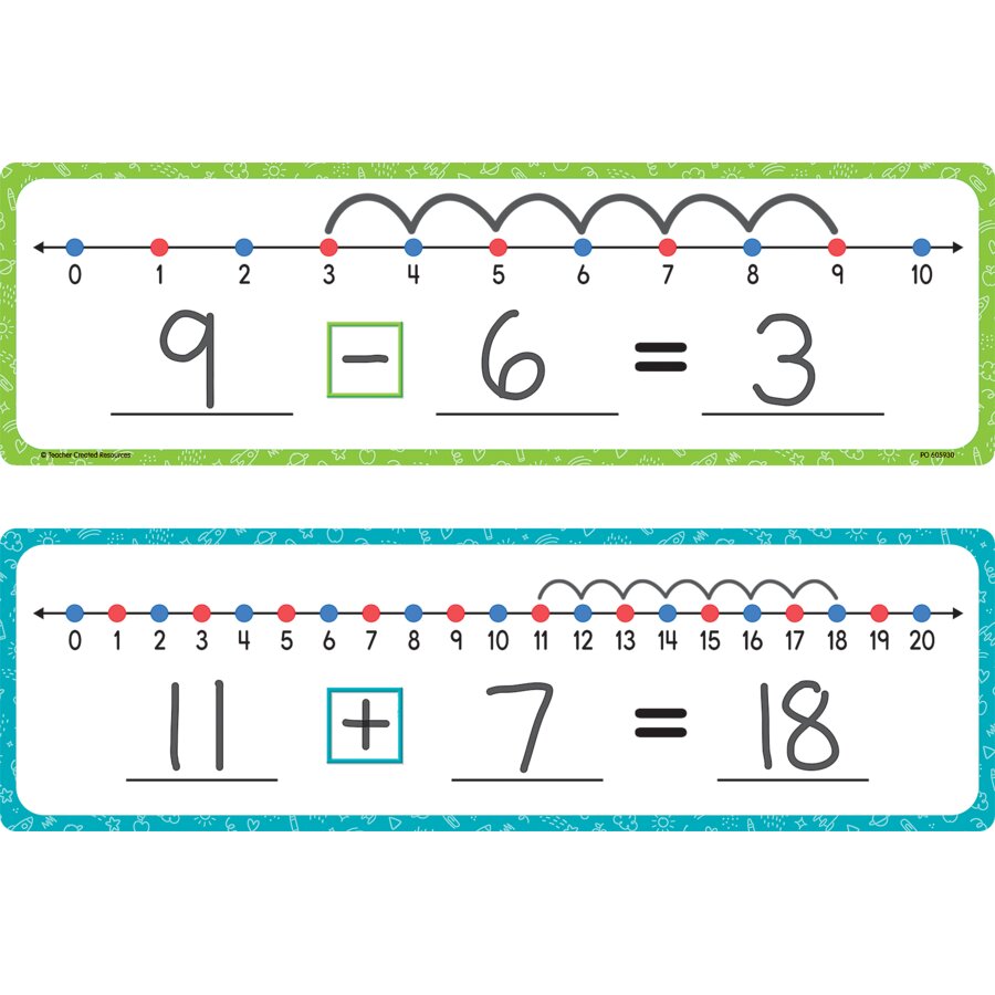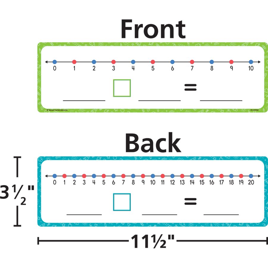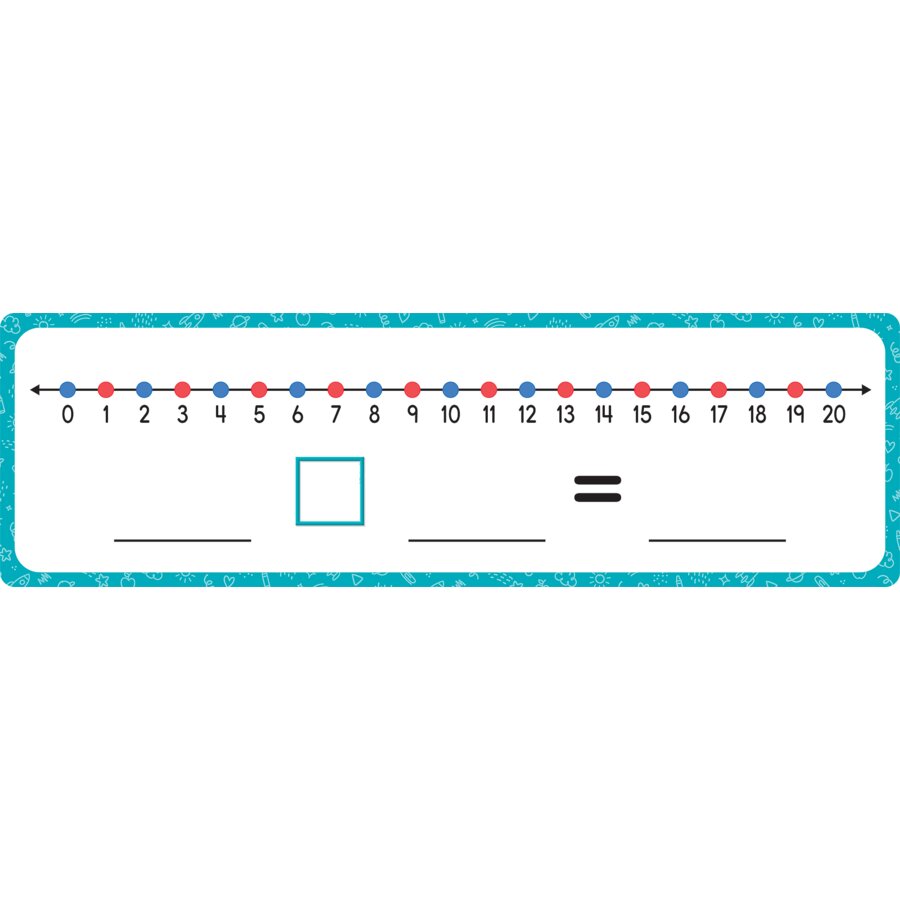 Learn to identify and understand number values 0–20 with these dry-erase number lines. Count, add, subtract, and more with writable space to practice equations. Double-sided write-on/wipe-off surface means students can practice math problems again and again. Measures 11-1/2" x 3-1/2". 30 pieces per pack.