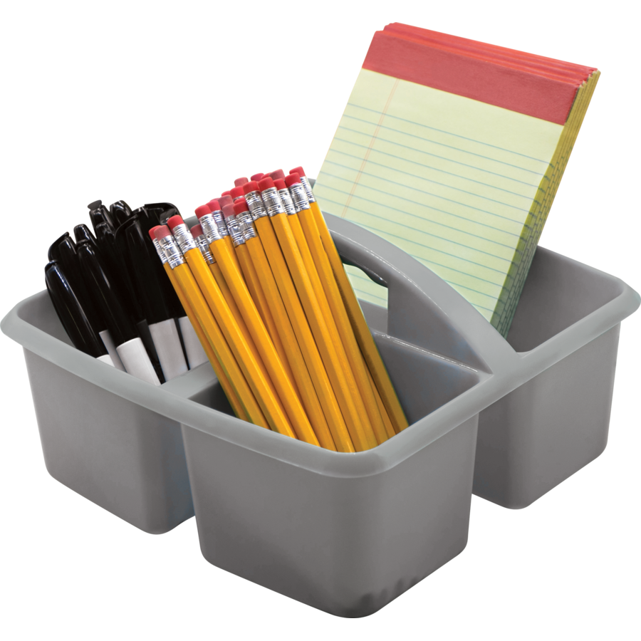 These plastic storage caddies are handy totes for your markers, calculators, timers, manipulatives, and many more small items that you want to keep within reach. Made from durable plastic and include divided compartments for easy organizing. Each caddy is BPA free and measures 9¼"L x 9"W x 5¼"H with 3 compartments.