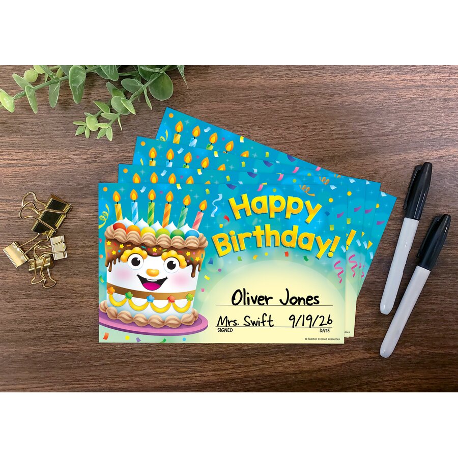 Birthdays have never been sweeter! Use these birthday cake awards to celebrate every student’s special day. Each reward is adorned with a cheerful birthday cake for a festive touch. Pair these awards with more border trim, posters, accents and stickers from the Cake Collection for decor and prizes that further remind every birthday student how special they are. Each pack includes 30 awards. Each award measures 8-1/2" x 5-1/2".