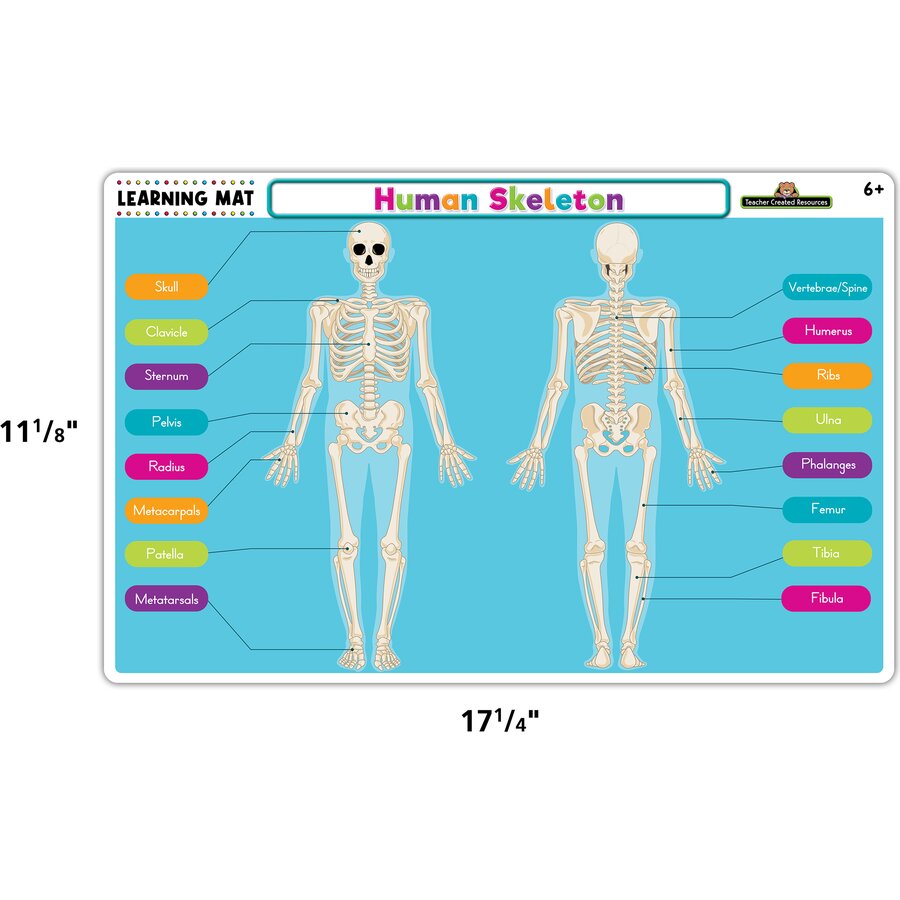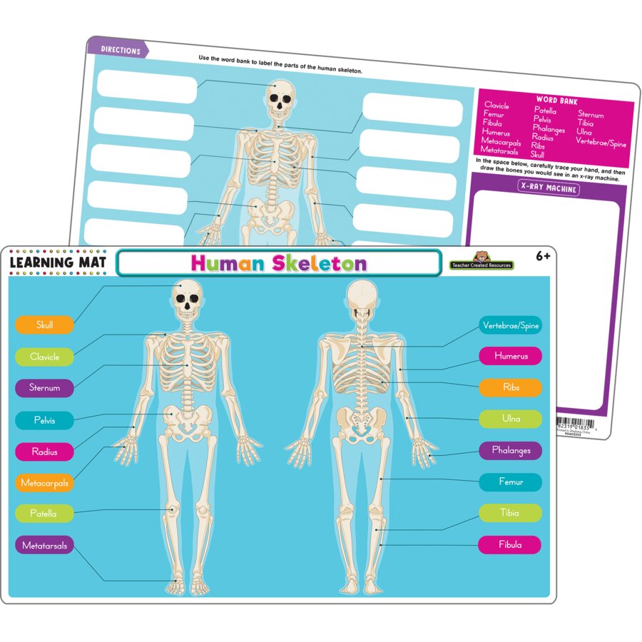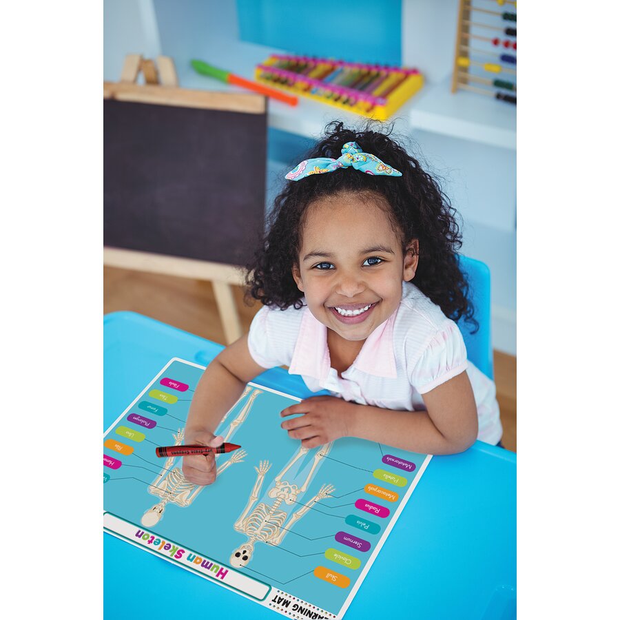 Teach children human anatomy with this colorful dry-erase learning mat! Kids can study a skeleton with labeled parts on one side, then challenge themselves to correctly identify each body part on the other side. After filling in the labels and checking their work, children can wipe it off and do it again, further enforcing important concepts. Whether at home or on the go, these mats make for a fun activity at the kitchen table, in restaurants, or even in the car. Use with Teacher Created Resources’ Colorful Dry-Erase Crayons (not included) to color, erase, and color again!