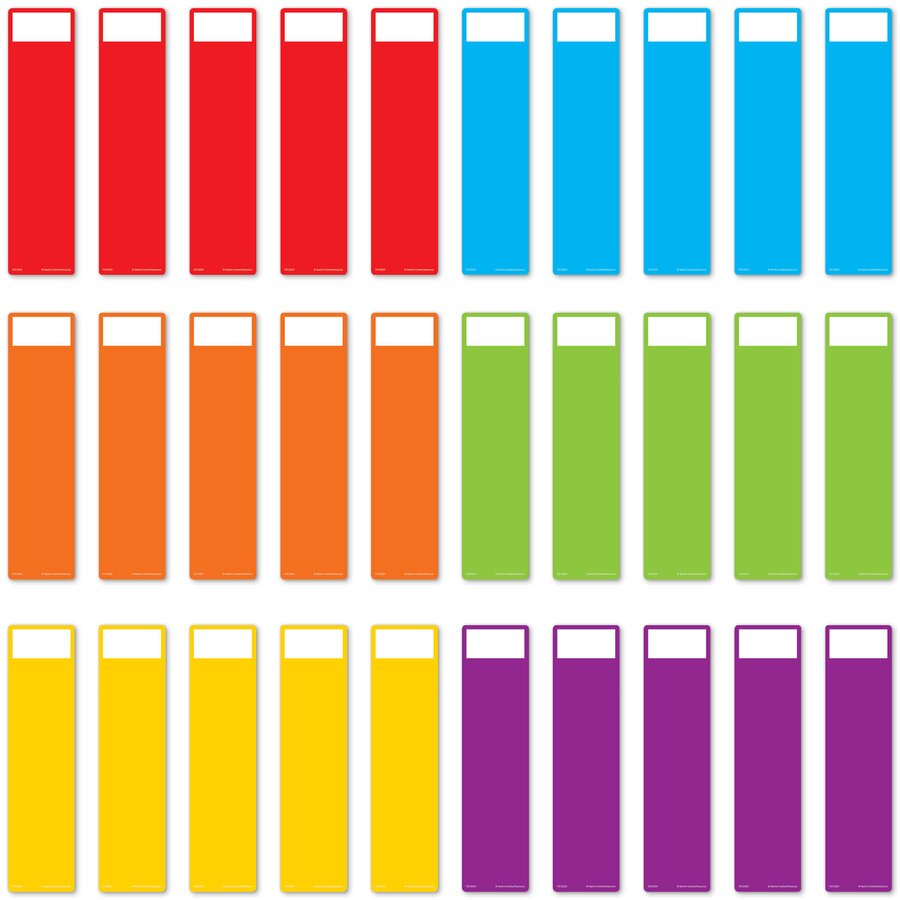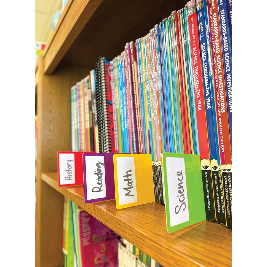 These library dividers make keeping your classroom library, subject areas, and bookshelves organized. Place between books to categorize by subject areas, genres, authors, and more! Ideal for ensuring borrowed books are reshelved correctly. These dividers are double-sided, so they’re easy for students to see and reference. Plus, the wipeable surface means these versatile dividers can be used again and again for labeling, organization, and more.Total pieces include 5 dividers in each bright color: red, orange, yellow, green, blue, and purple. Each divider measures 3" x 11-3/4".