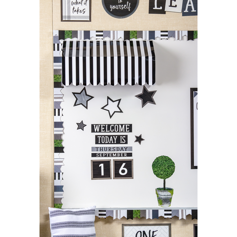 Use this pennants border trim to liven up your classroom! Create fresh looks for bulletin boards, windows, walls, and class projects. Mix and match with coordinating products (stickers, notepads, awards, etc.) for a classroom theme. Each pack has 12 pieces (approx. 2¾'' x 35'') for a total length of about 35 feet of trim!