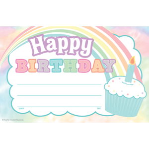Celebrate every student's latest trip around the sun with these pastel birthday certificates. Printed on sturdy paper, these awards will become keepsakes for the youngsters who receive them. Write-on lines allow for personalized messages that are sure to make students feel special. Awards measure 8½'' x 5½''. 30 per pack.