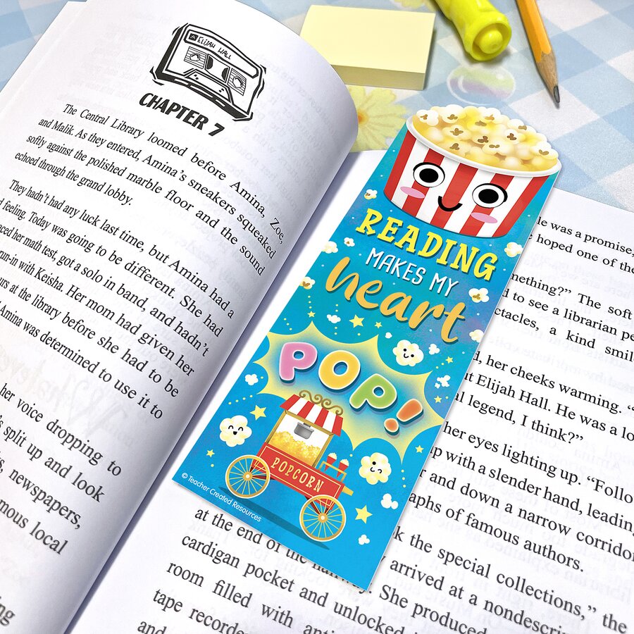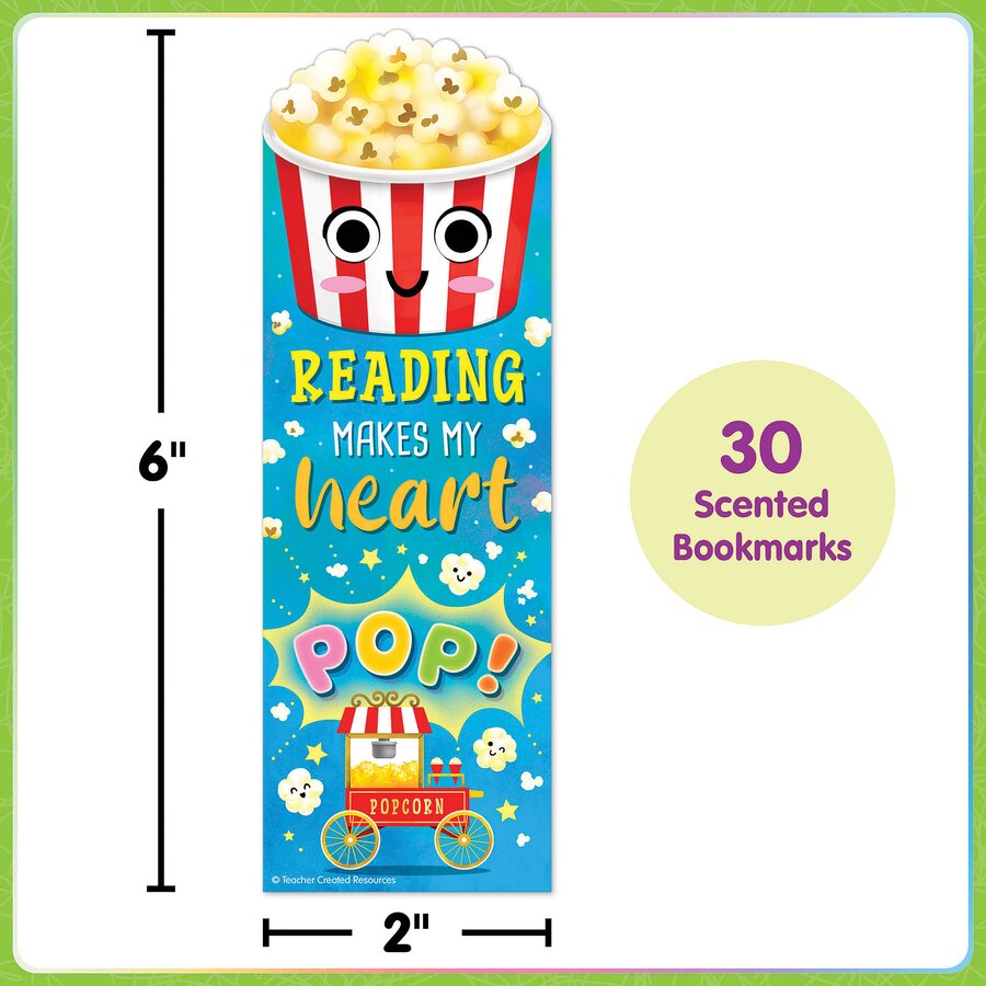 Pop some sensory fun into story time with these bookmarks. Featuring adorable art, a positive message, and a popcorn scent, these bookmarks are great for positive reinforcement. Use as treasure box prizes, student incentives, or reading rewards. Tuck them into bags at the book fair or library. Each pack includes 30 pieces. Each piece measures 2" x 6".