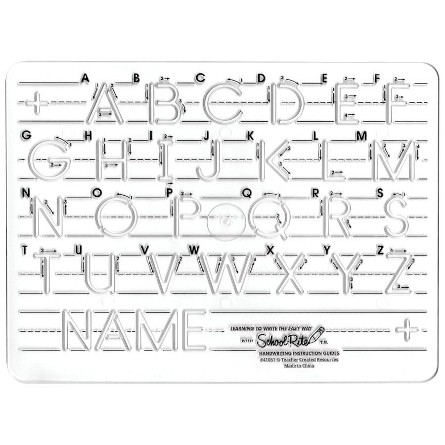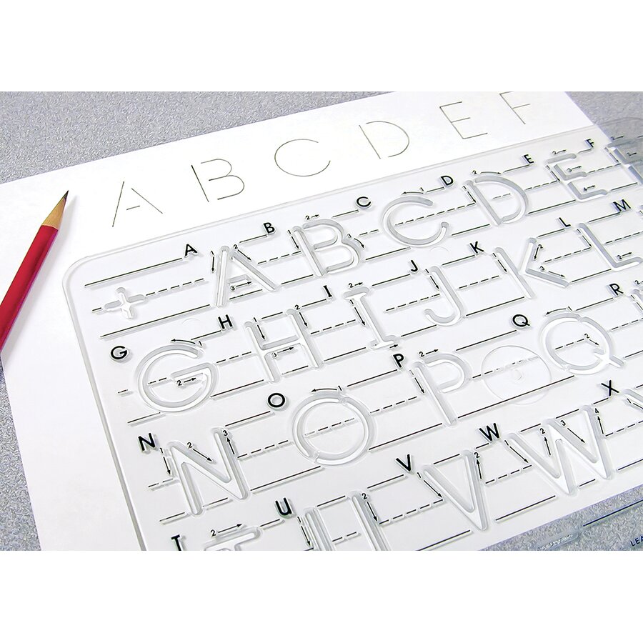 Give students the "write" stuff they need to master handwriting with this instruction guide. Featuring sample letters for identification, a numbered stroke sequence, and directional arrows, this all-in-one stencil is perfect for helping young writers practice penmanship. Ruled lines illustrate correct letter proportion, spacing, and placement. The guide includes suggested activities and a sample word so students can practice forming words from letters. Template measures 8 1/2" x 11". Each letter measures about 1".