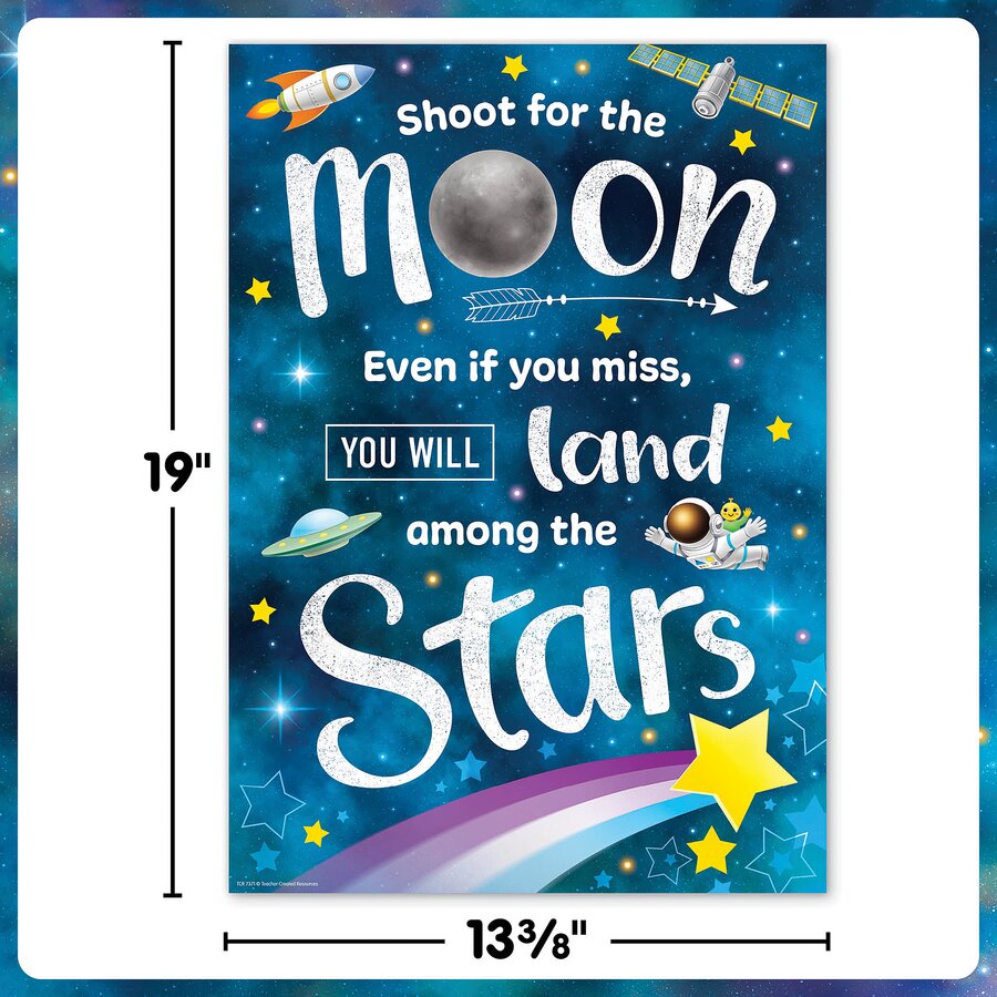 Push for progress (not perfection) with this motivational chart. Stars and spaceships adorn a soft blue background with twinkling lights, creating a cosmic calm that’s ideal for every learning space. Remind students that making mistakes is part of the learning process, and give them the language they need to overcome their own self-doubt. Create a calm-down corner, build self-confidence, and inspire a kinder classroom—all in a fun solar-system theme. Each poster measures 13-3/8" x 19" and features easy-to-read text, ensuring every child can see it around the classroom.