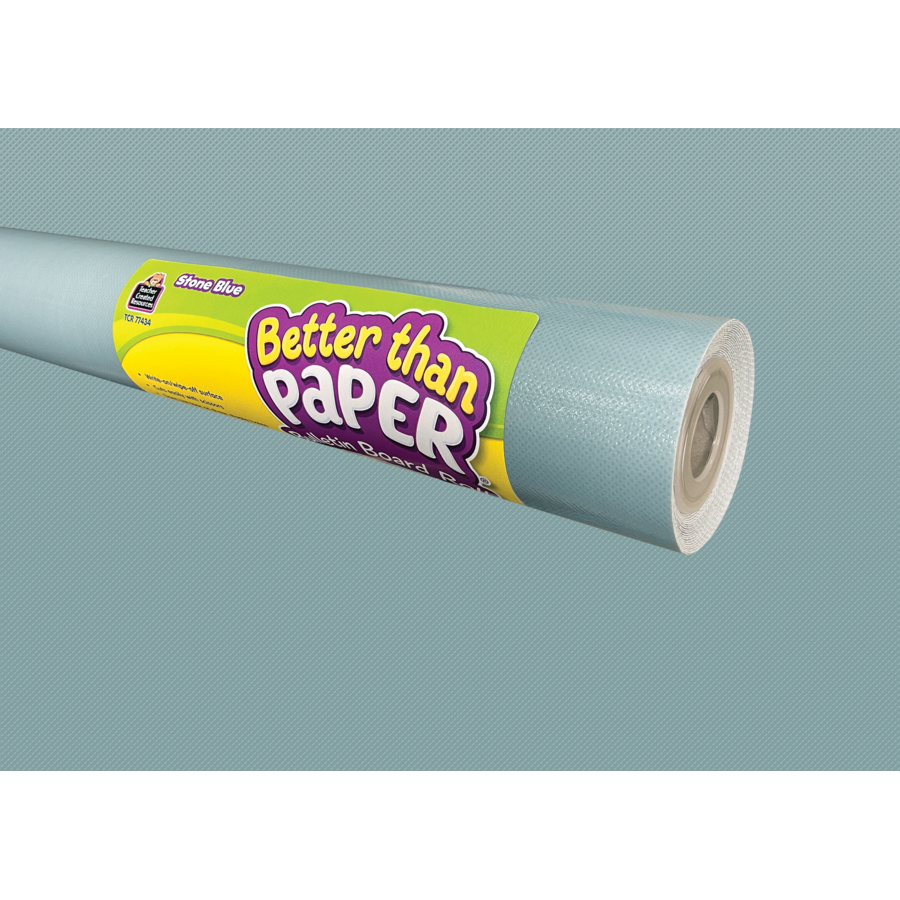 Use this stone blue color as the anchor for your next classroom theme. This Better Than Paper® roll makes creating calming, creative bulletin board backdrops quick and easy. Simply cut with scissors, hang, and go! It won’t fade, wrinkle, or tear—so it will last the entire school year. Add complementary border trim, accents, posters, and student work with staples or tape, and remove without ripping or leaving noticeable holes. Plus, the durable write-on/wipe-off surface is easy to clean and can be used again and again. Roll measures 4' x 12'.